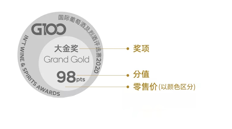 从上届起,G100在奖标设计上做了全新调整,涵盖更多的获奖酒款信息,以更加利于获奖酒款的高效推广。
