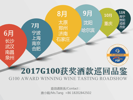 G100巡展,专注于挑选中国市场上高性价比的葡萄酒,并将它们推广到具有市场潜力的各个城市,G100活动每到一站,都吸引了众多当地专业观众的关注和参与。专家讲师对大师班酒款进行深度讲解,让参与者可以更详尽的了解酒款及相关信息;G100自由品鉴会,为专业观众和参展商提供了良好沟通洽谈氛围,有效协助获奖酒商找到合适的经销商。由野城酒具和东元精选火腿提供的免费礼品及美食,为现场增加气氛。8月,风雅韵相约好,华北见~