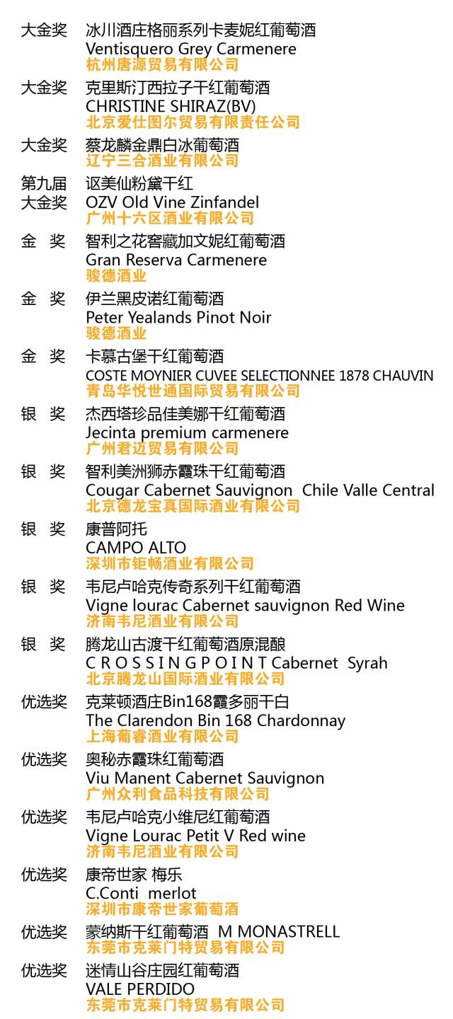获奖酒大师班酒单