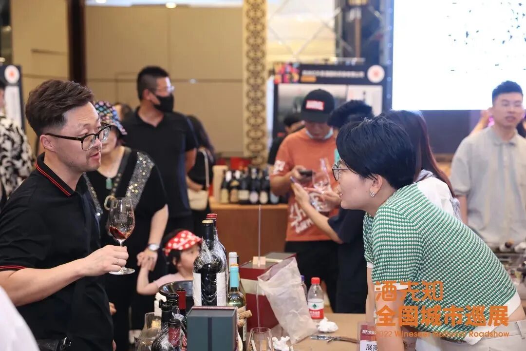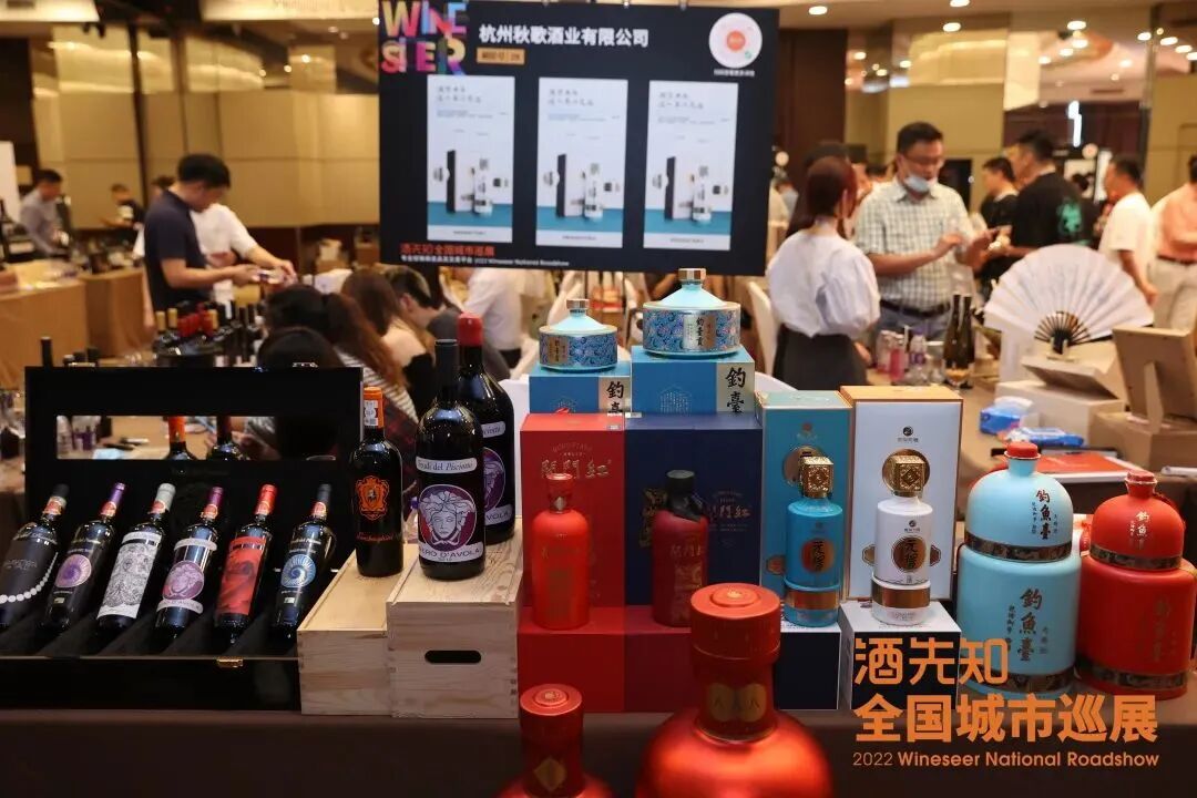 巡展现场洽谈氛围热烈,来自各地的展商与杭州酒类经销商共论酒事,交换信息,品鉴酒款,寻求合作商机。